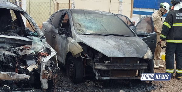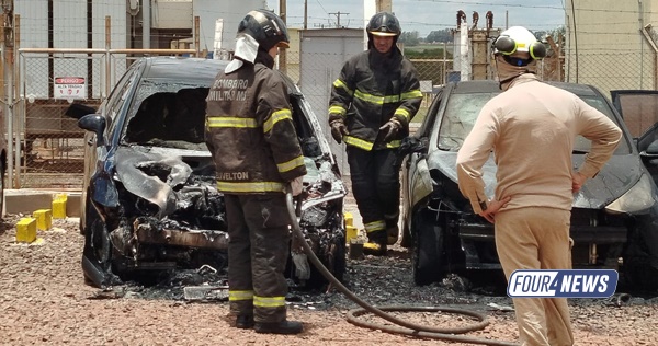 Carro pega fogo no estacionamento da JBS e incêndio atinge outro veículo em Sidrolândia