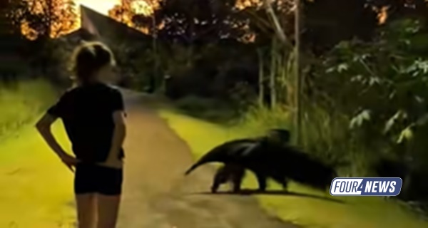 Um visitante inusitado chamou a atenção no Parque Vacaria, em Sidrolândia, nesta semana. Um tamanduá-bandeira foi filmado por uma moradora enquanto atravessava calmamente a pista de caminhada e seguia em direção à vegetação.