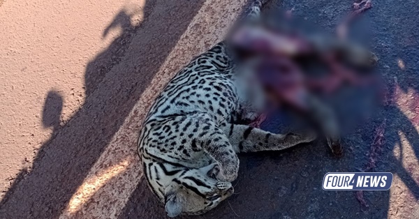 Uma jaguatirica (Leopardus pardalis) foi encontrada morta nesta quinta-feira (19) após ser atropelada na BR-060, nas proximidades do Clube de Laço, em Sidrolândia. O animal silvestre, pertencente à fauna brasileira e protegido por lei, teve parte do corpo dilacerado com o impacto.