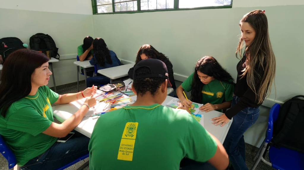 E no interior, em Itaporã, a professora de artes, Suselaine, leciona na mesma escola