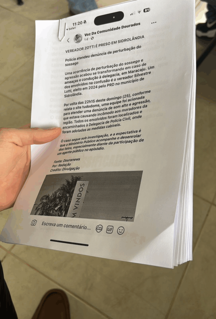 Vereador Zotti tornou-se alvo de especulações após a circulação de uma foto que sugeria sua prisão por algazarra e perturbação do sossego. A imagem, divulgada em grupos de WhatsApp e replicada por alguns veículos de imprensa, gerou comoção e repercussão instantânea. No entanto, o Jornal Four News apurou com exclusividade que não existe nenhum boletim de ocorrência confeccionado ou assinado envolvendo a autoridade mencionada.